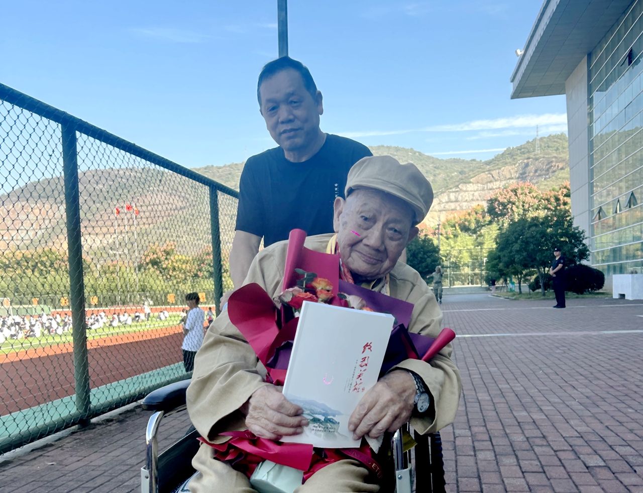 98歲老兵庫芳禹對《致敬英雄》報(bào)道集愛不釋手。呂鑒蕾 攝