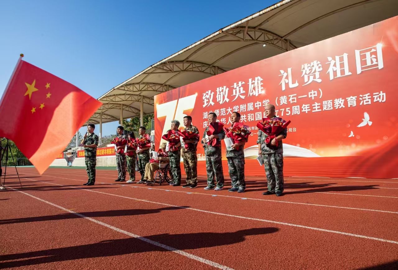 9月29日上午,國慶節(jié)臨近,“致敬英雄 禮贊祖國”——湖北師范大學(xué)附屬中學(xué)(黃石一中)慶祝中華人民共和國成立75周年活動(dòng)舉行?;顒?dòng)通過走一次紅地毯、唱一首主題歌、獻(xiàn)一束手捧花、送一本報(bào)道集等形式,致敬為共和國無私奉獻(xiàn)的英雄們。