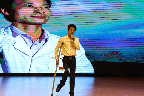 杜詠梅的《牽手》,講述了一位教師與一名自閉癥兒童的故事?!拔釃?guó)萬(wàn)疆以仁愛(ài),千年不滅的信仰......”現(xiàn)場(chǎng)觀眾應(yīng)節(jié)合拍,氣氛達(dá)到了高潮。