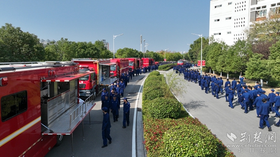 黃岡市委、市政府相關(guān)負(fù)責(zé)同志出席儀式,市消防安全專委會成員單位代表、重點(diǎn)單位負(fù)責(zé)人、高校師生代表、消防志愿者代表、消防救援指戰(zhàn)員代表等1000余人參加活動。
