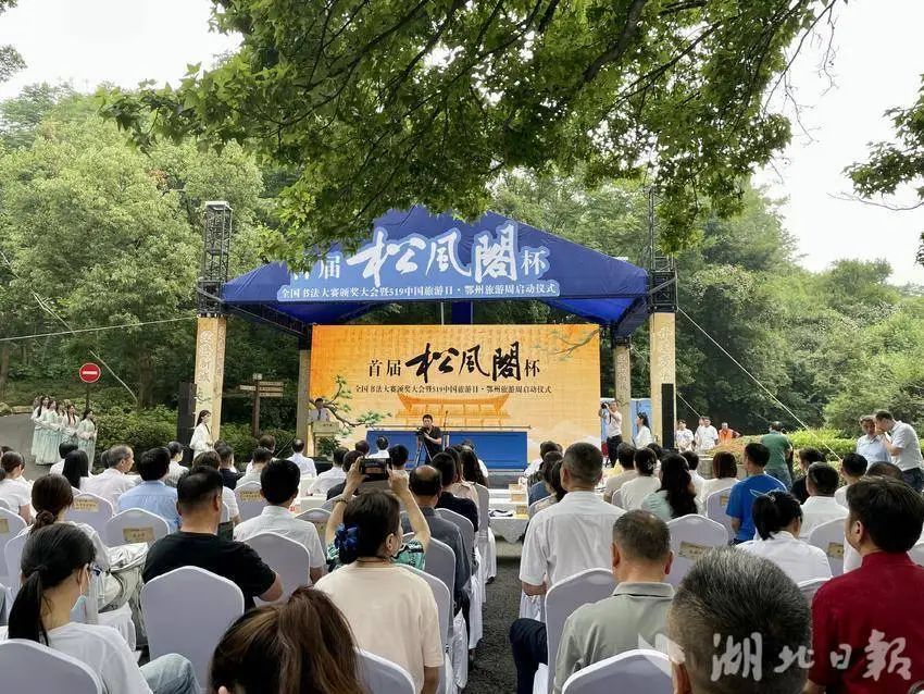2024年5月19日,中國旅游日當(dāng)天,首屆“松風(fēng)閣”杯全國書法大賽頒獎大會在鄂州市西山風(fēng)景區(qū)隆重舉辦,省、市領(lǐng)導(dǎo)為獲獎代表頒獎。與此同時,現(xiàn)場邀請專家進行了“跨越千年,對話黃庭堅——黃庭堅松風(fēng)閣書法的價值及對鄂州文化的塑造”對話。