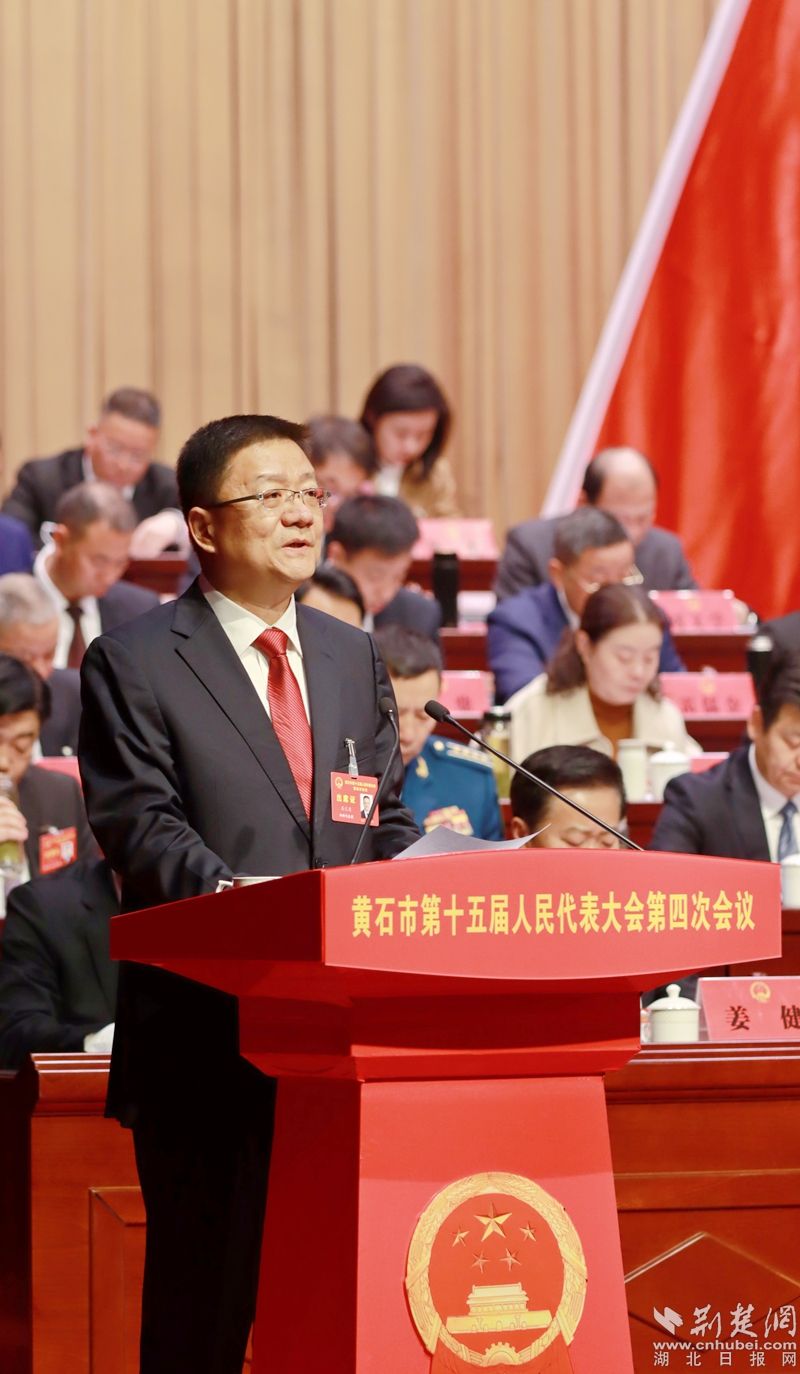 2月7日上午,黃石市第十五屆人民代表大會第四次會議在黃石磁湖劇院開幕。黃石市委書記郄英才出席大會,市委副書記、市長吳之凌向大會作政府工作報告。