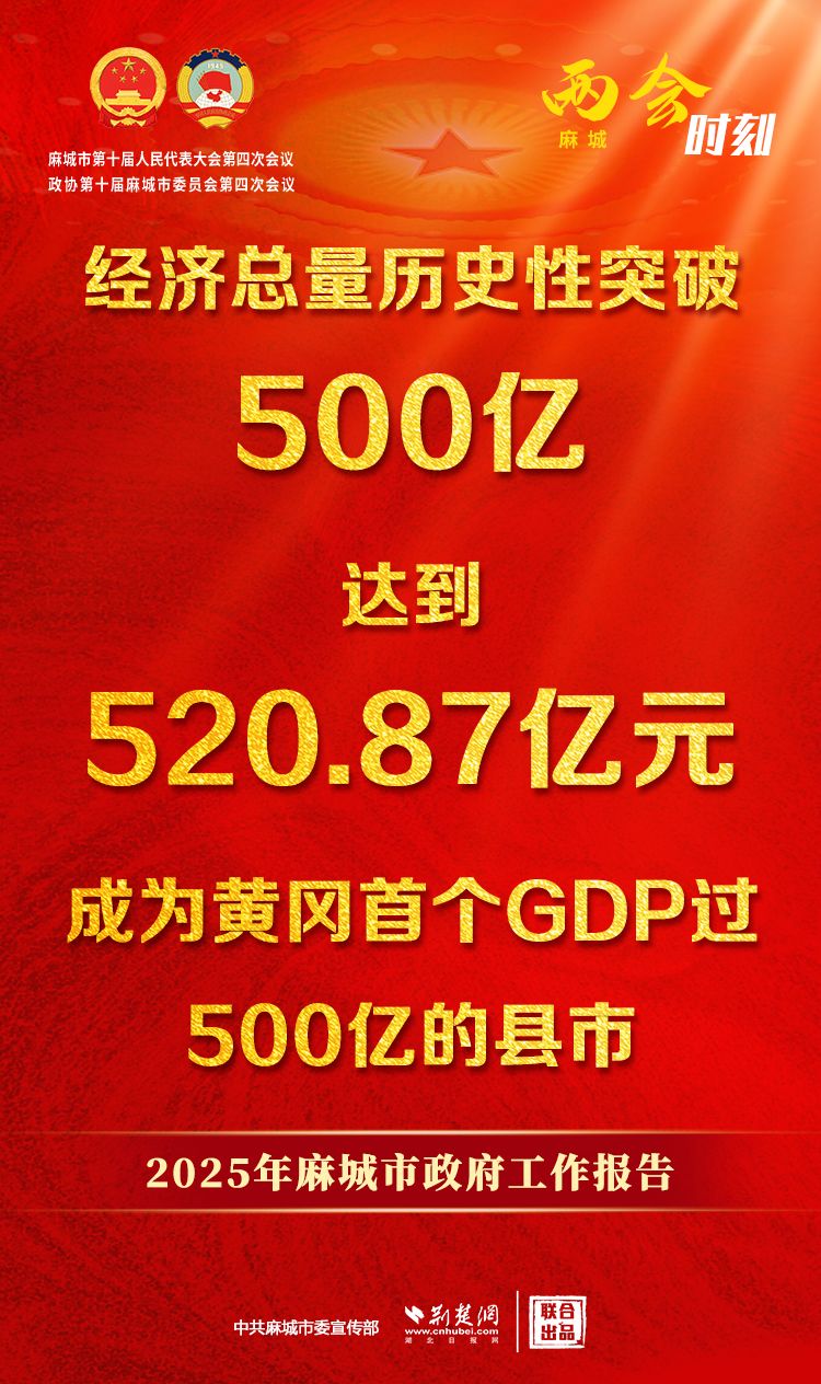 2024年,麻城市經(jīng)濟(jì)總量歷史性突破500億,達(dá)到520.87億元,增長(zhǎng)6.7%,總量和增速均居黃岡首位,成為黃岡首個(gè)GDP過(guò)500億的縣市。