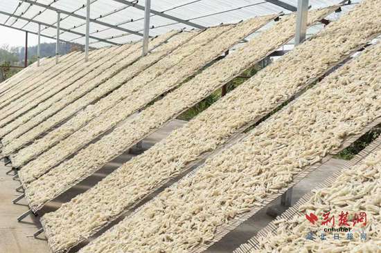 而這樣的環(huán)境催生了“豆絲”這一鄂州傳統(tǒng)美食。除了大米外,綠豆、黃豆、葛根等“豆絲”原材料生長在山溝、溪邊、林中?!懊磕耆攵?,幾乎家家起大灶開始制作豆絲,風干后可以留存整個冬天?!敝軛罱榻B。