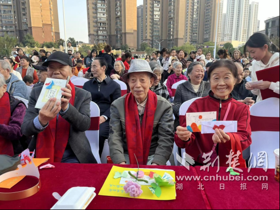 老年居民們欣賞文藝匯演收獲節(jié)日祝福。通訊員供圖