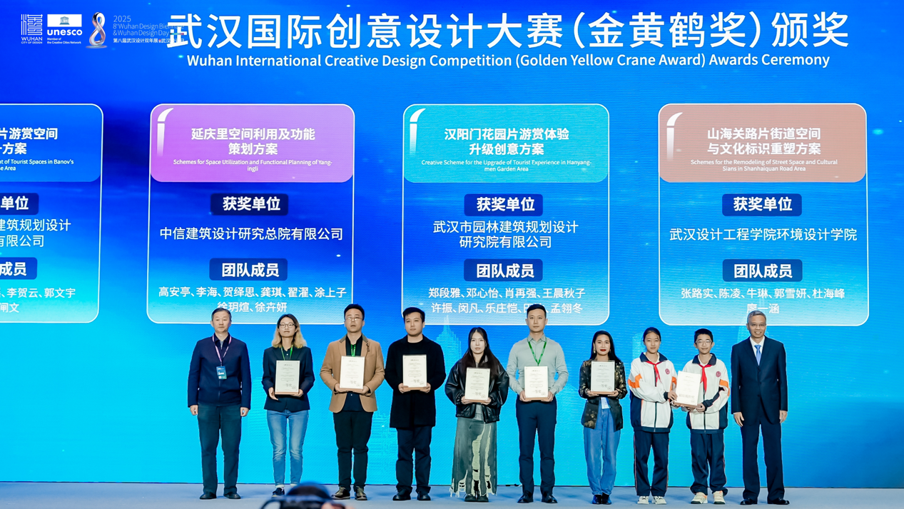 開(kāi)幕式上,2025年武漢國(guó)際創(chuàng)意設(shè)計(jì)大賽(金黃鶴獎(jiǎng))與 2025年國(guó)際街區(qū)挑戰(zhàn)賽頒獎(jiǎng)儀式同步舉行。其中,象征武漢設(shè)計(jì)創(chuàng)新探索的“金黃鶴獎(jiǎng)”,今年特意選取黃鶴樓、山海關(guān)路、漢陽(yáng)門(mén)等市民常去、關(guān)注度高、滿滿煙火氣的城市地標(biāo)作為設(shè)計(jì)對(duì)象,不限專(zhuān)業(yè)和地域,征集更宜人的更新提升方案?,F(xiàn)場(chǎng),武漢瑞拓建筑設(shè)計(jì)咨詢有限公司等6個(gè)專(zhuān)業(yè)組一等獎(jiǎng)和最佳組織獎(jiǎng)武漢市七一華源中學(xué)等獲獎(jiǎng)代表接受頒獎(jiǎng)。國(guó)際街區(qū)挑戰(zhàn)賽,則是由聯(lián)合國(guó)教科文組織設(shè)計(jì)之都城市聯(lián)合舉辦,全球高校團(tuán)隊(duì)共同參與的國(guó)際設(shè)計(jì)賽事。經(jīng)過(guò)全球30位權(quán)威專(zhuān)家1個(gè)月的精心細(xì)致評(píng)審,選出了四個(gè)優(yōu)勝方案。現(xiàn)場(chǎng),為交互設(shè)計(jì)獎(jiǎng)獲獎(jiǎng)團(tuán)隊(duì)武漢大學(xué)、美學(xué)設(shè)計(jì)獎(jiǎng)獲獎(jiǎng)團(tuán)隊(duì)墨西哥人文大學(xué)、社區(qū)發(fā)展獎(jiǎng)獲獎(jiǎng)團(tuán)隊(duì)江漢大學(xué)團(tuán)隊(duì)和美國(guó)勞倫斯理工大學(xué)團(tuán)隊(duì),以及綜合設(shè)計(jì)獎(jiǎng)獲獎(jiǎng)團(tuán)隊(duì)墨西哥人文大學(xué)頒獎(jiǎng)。