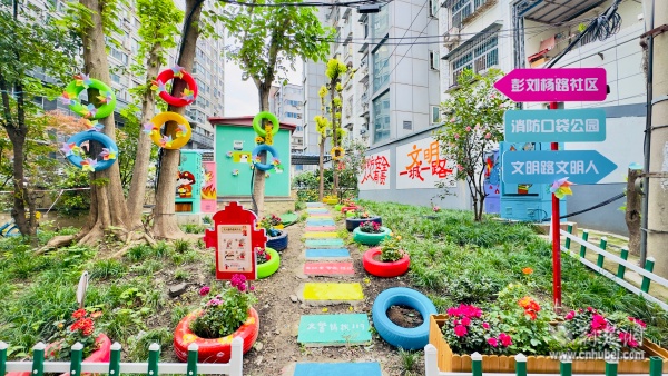 改造過(guò)程中,各方力量協(xié)同發(fā)力。物業(yè)負(fù)責(zé)大型樹(shù)木修剪,志愿者團(tuán)隊(duì)深入綠地清理雜草垃圾,累計(jì)清運(yùn)廢棄物數(shù)十袋;施工人員開(kāi)展土地平整,精心栽種月季、杜鵑、迷迭香等適應(yīng)性強(qiáng)的觀賞植物,搭配彩繪輪胎裝飾,使綠化覆蓋率達(dá)到80%以上。最引人注目的是,花園創(chuàng)新融入消防主題元素——消防栓造型景觀、滅火器樣式指示牌等設(shè)施點(diǎn)綴其間,讓居民在休閑漫步中自然接受安全教育。