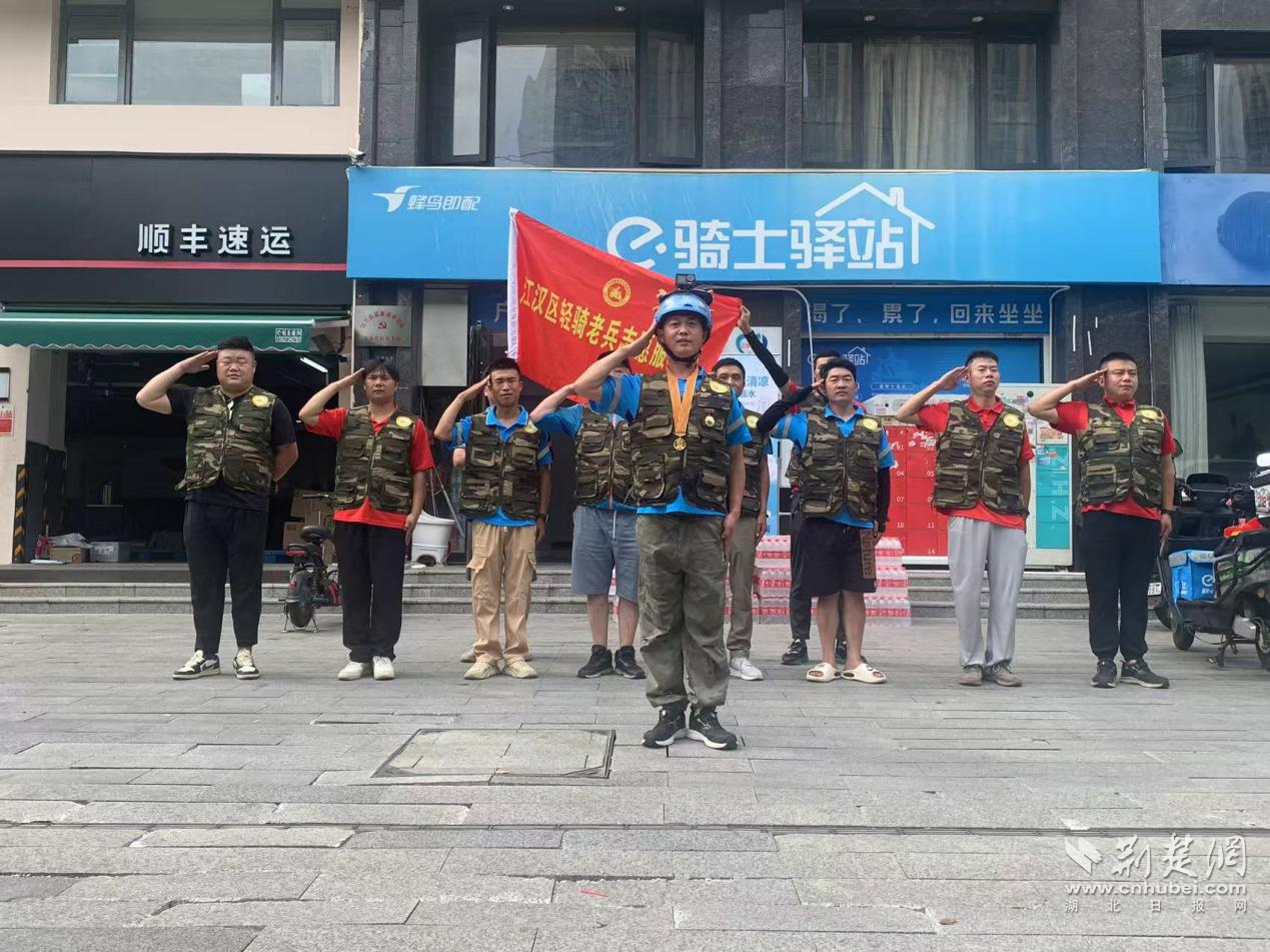 后來(lái),類似的事情越來(lái)越多,張寶劍的行為也被一些“同行”看在了眼里。2019年,十幾名同樣退伍的騎手找到他,大家志趣相投,一拍即合,退伍老兵志愿隊(duì)便在自然召喚中成立。他們甚至沒(méi)有旗幟,只是利用送餐間隙,做了許多力所能及的好事。