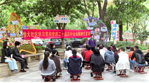 社區(qū)黨委堅持把理論武裝擺在首位,著力構建立體化宣講矩陣。創(chuàng)新打造“綠洲樹下”“小亭議事”“周三有約”等特色微陣地,充分發(fā)揮“社區(qū)合伙人”中老黨員、退伍老兵、先進模范等榜樣力量的核心作用,組建“紅色宣講團”。宣講團成員化身“草根講師”,走出會議室,深入綠蔭下、小亭中,以百姓視角、武漢方言、拉家常方式,生動解讀二十屆四中全會精神等理論及最新政策,使黨的聲音更鮮活、更可感。在“潤物有聲”的微課堂里,居民圍坐探討、邊聽邊議、有問有答,實現了理論學習“零距離”、思想傳播“接地氣”。同步開展“治理金點子”征集活動,引導居民將學習成果轉化為參與社區(qū)治理的實際行動,圍繞公共事務、環(huán)境整治、鄰里互助等議題積極建言獻策,累計收集有效建議100余條。