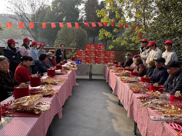 為鍛煉老人動手能力與思維敏捷度,活動設(shè)趣味手工環(huán)節(jié)。老人們在社區(qū)工作人員與武大學(xué)生志愿者指導(dǎo)下,將干花、仿真花細(xì)心插進(jìn)裝飾桶?,F(xiàn)場笑聲不斷,老人們舉著作品展示、合影,既收獲成就感,又拉近鄰里距離,傳遞社區(qū)溫情。