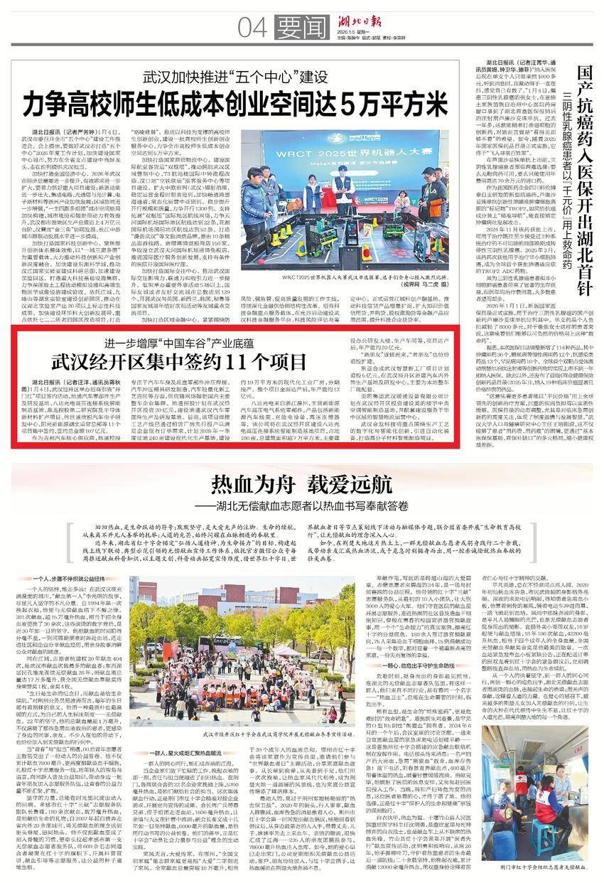 1月5日,湖北日?qǐng)?bào)要聞版報(bào)道:進(jìn)一步增厚“中國(guó)車谷”產(chǎn)業(yè)底蘊(yùn) 武漢經(jīng)開區(qū)集中簽約11個(gè)項(xiàng)目