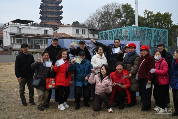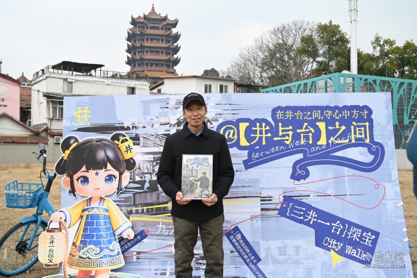 快閃活動選址社區(qū)黃鶴游園,抬頭即見巍巍黃鶴樓。現(xiàn)場,82歲守井人謝邦純老人與社區(qū)工作人員、青年學(xué)子一同講述“三井一臺”的故事,帶領(lǐng)在場居民穿越時空,觸摸楚王府遺韻與市井生活記憶。
