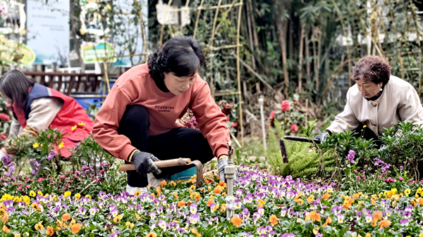 榜樣的力量是無窮的。當(dāng)張克萍種下的第一批花草綻放出鮮艷花朵時,鄰居們紛紛被眼前的美景打動?!翱吹剿粋€人辛辛苦苦把荒地變得這么好看,我們也想加入進(jìn)來?!惫鸢⒁绦χf。就這樣,從一個人孤軍奮戰(zhàn),到幾戶居民搭把手,再到越來越多的人主動參與,最終形成了45戶居民共同參與的共建隊伍。居民桂阿姨憑著造型設(shè)計的天賦,成了花園的“總設(shè)計師”,居民們種好花草后,她總會細(xì)心指導(dǎo)修改,讓每一塊小區(qū)域都獨具特色。