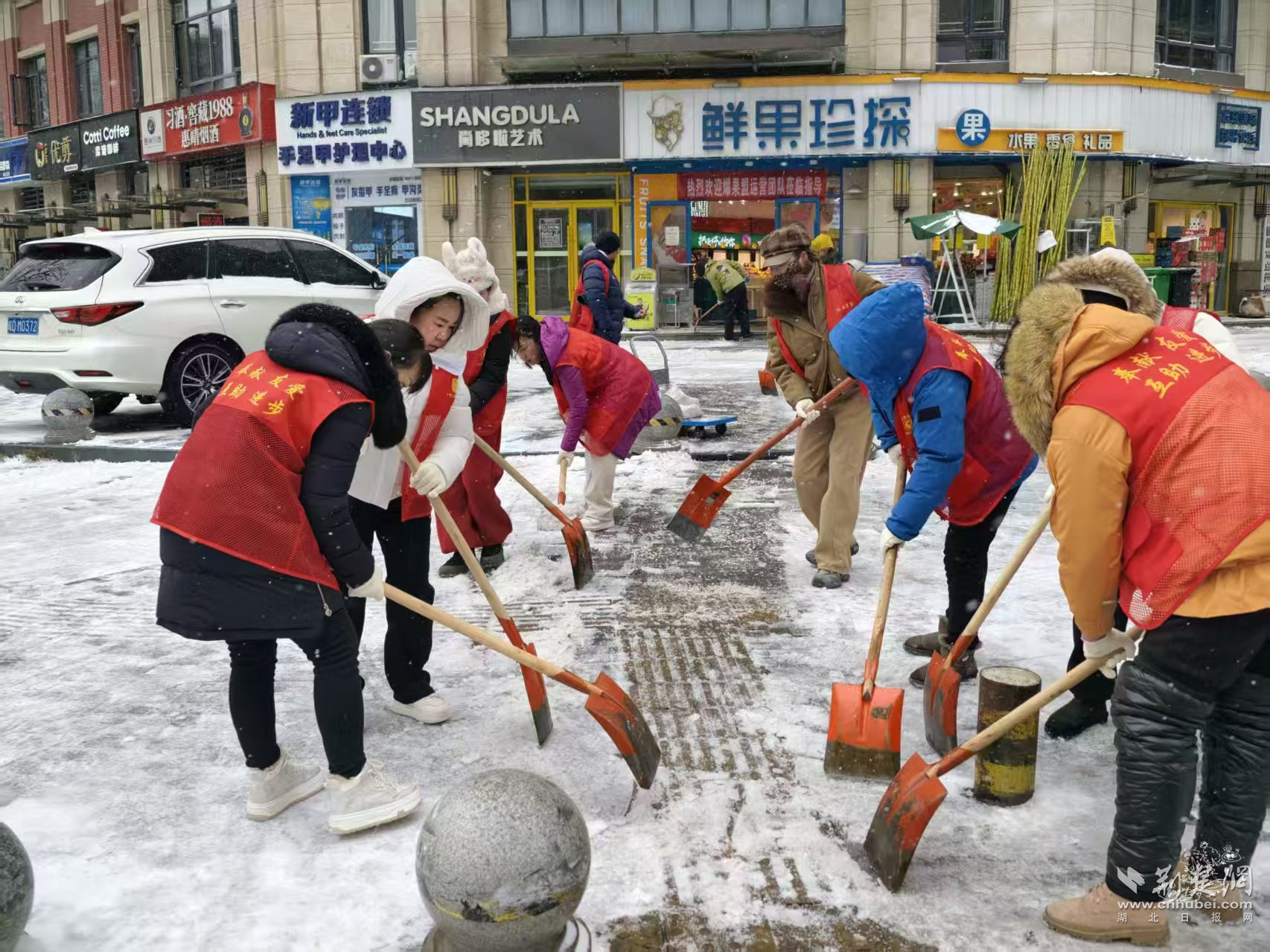 凜冽寒風(fēng)中,一抹抹“志愿紅”成為冬日里最溫暖的風(fēng)景。鐵鍬、雪鏟、掃帚齊上陣,大家分工協(xié)作、默契配合,有人清掃路面浮雪,有人鏟除頑固冰層,有人精準(zhǔn)撒布融雪劑防止復(fù)凍,還有人專門在單元門口、坡道、背街小巷等易滑點(diǎn)位反復(fù)排查、重點(diǎn)清理。
