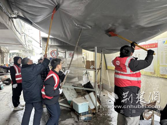 陳家墩社區(qū)則結(jié)合老舊小區(qū)多、坡道多的實(shí)際情況,提前明確分片包干責(zé)任,將單元門口、背街小巷和易結(jié)冰路段列為重點(diǎn)區(qū)域,組織街道工作人員與社區(qū)黨員志愿者、熱心居民并肩作戰(zhàn)。雪花落滿肩頭、化成水珠,大家卻顧不上拍一拍,鏟一鍬、掃一段、清一處,干勁十足?!翱吹铰访嫔戏e雪都清理干凈了,才放下心來。”