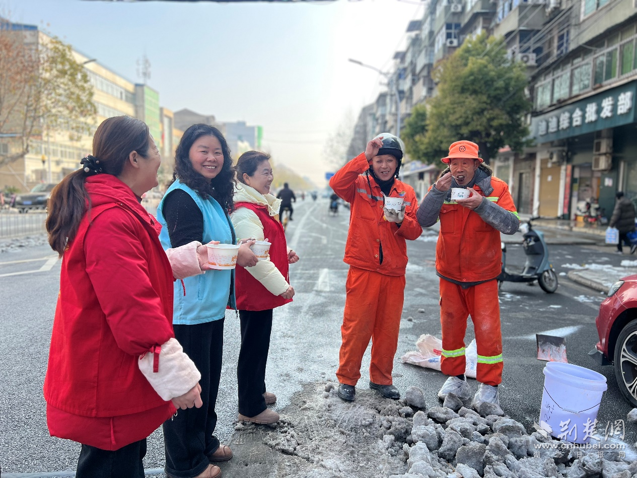 荊楚網(wǎng)(湖北日?qǐng)?bào)網(wǎng))訊(通訊員 吳悠琪)1月23日上午,武漢經(jīng)開(kāi)區(qū)紗帽街道薇湖路社區(qū)工會(huì)愛(ài)心驛站開(kāi)展“品一碗暖心臘八粥,情暖環(huán)衛(wèi)工”冬季送溫暖活動(dòng)。工作人員提前備好食材,經(jīng)過(guò)數(shù)小時(shí)慢火熬煮,將軟糯香甜、營(yíng)養(yǎng)豐富的臘八粥,逐一送到轄區(qū)各路段的環(huán)衛(wèi)工人手中,為寒冬里的一線(xiàn)勞動(dòng)者送上社區(qū)與工會(huì)熱氣騰騰的關(guān)懷。