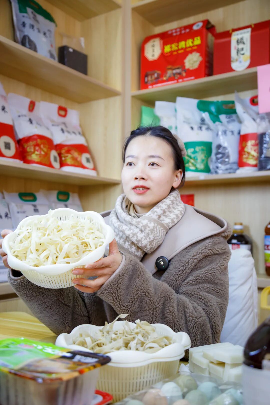 直播基地總面積達(dá)300㎡,是街道精心打造的綜合性農(nóng)業(yè)服務(wù)窗口,依托武漢云上耕農(nóng)業(yè)發(fā)展有限公司搭建的優(yōu)質(zhì)供應(yīng)鏈,匯聚了祁家灣及周邊十余家家庭農(nóng)場、合作社的二十余種特色產(chǎn)品——鮮榨菜籽油、優(yōu)質(zhì)大米等糧油調(diào)味,純散養(yǎng)土雞蛋、手工豆絲、風(fēng)干魚等特色農(nóng)產(chǎn)品,應(yīng)有盡有。