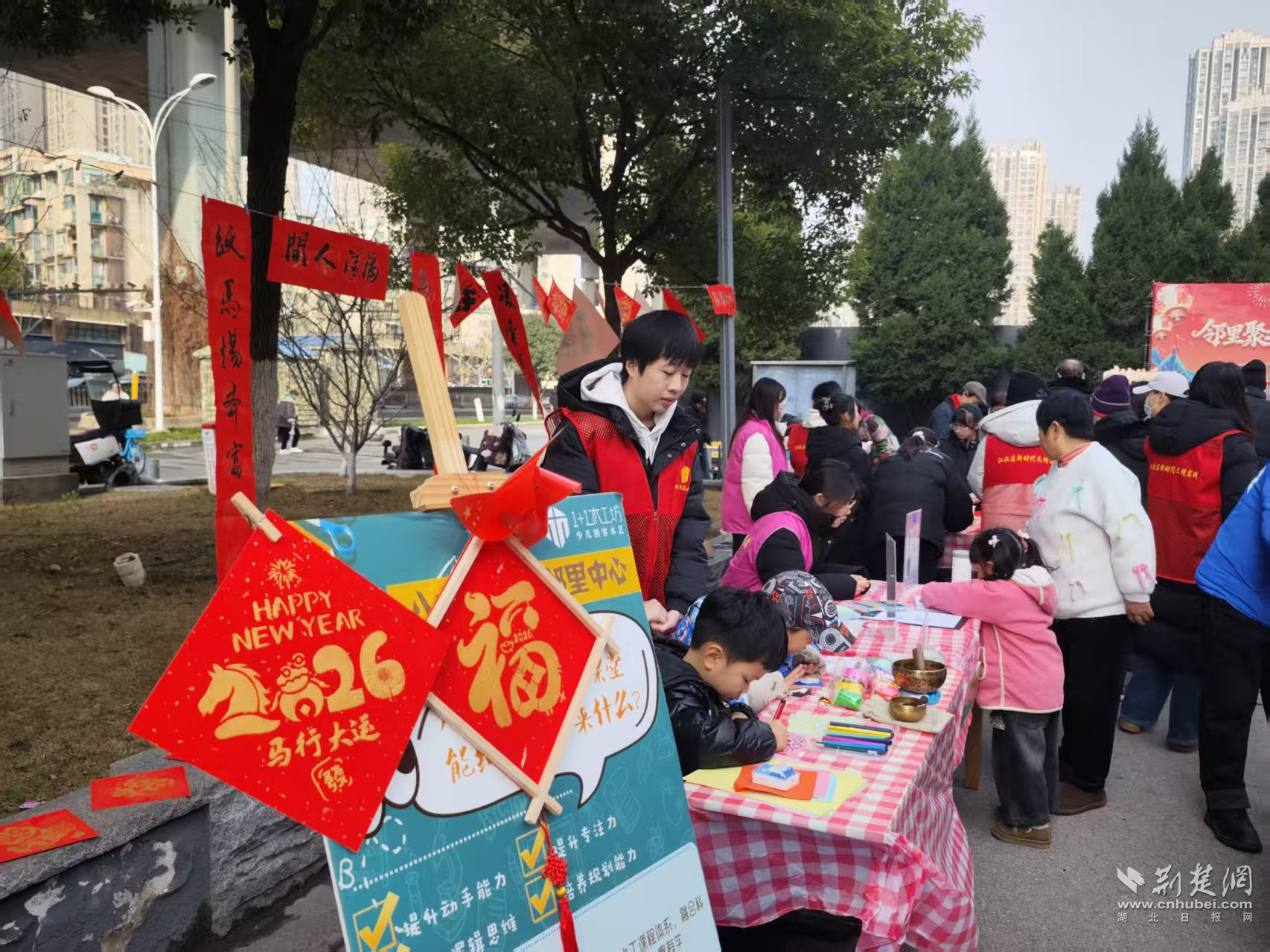 荊楚網(wǎng)(湖北日報網(wǎng))訊(記者 何婧 通訊員 顧蝶)2月1日,唐家墩街道八古墩社區(qū)新時代文明實踐站聯(lián)合中百鄰里匯,開展“我們的節(jié)日·春節(jié)”主題活動。寫春聯(lián)、做手工、便民服務(wù)進(jìn)社區(qū),居民在家門口感受到濃濃年味,也在互動中拉近了彼此距離。