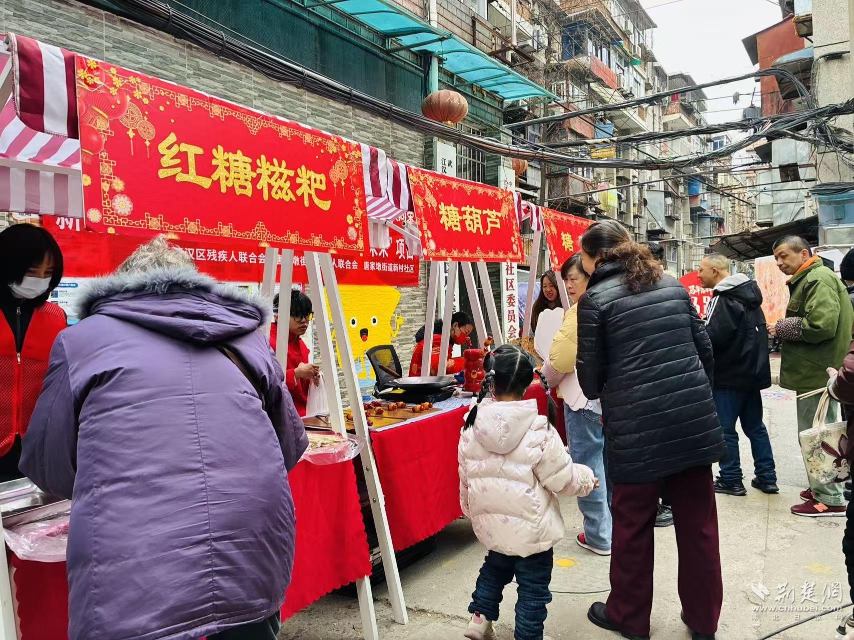 當(dāng)天,新村社區(qū)舉辦“匠心傳承煥新彩 非遺助殘啟未來(lái)”項(xiàng)目系列活動(dòng)之一——“非遺游園匯百藝 鄰里同心啟新章”。在江漢區(qū)殘疾人聯(lián)合會(huì)和唐家墩街道殘疾人聯(lián)合會(huì)的指導(dǎo)下,這場(chǎng)游園會(huì)以非遺為紐帶,把文化體驗(yàn)、鄰里互動(dòng)和助殘關(guān)懷融進(jìn)一場(chǎng)“家門(mén)口的過(guò)年”。