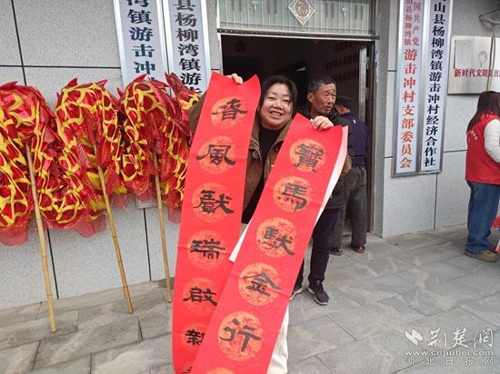 “手寫的春聯(lián)才有年味!這不僅是字,更是心意和祝福,太暖心了!”拿到心儀春聯(lián)的村民喜笑顏開。大家或挑選佳句,或定制心意,小心翼翼地將墨跡未干的春聯(lián)鋪開晾曬,臉上洋溢著幸福的笑容。