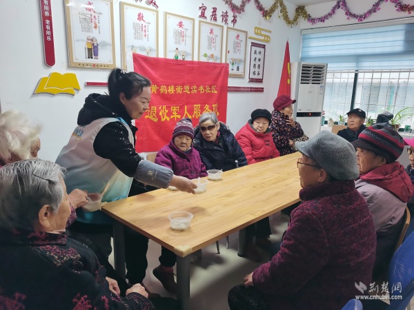 活動當天,讀書社區(qū)養(yǎng)老服務中心內歡聲笑語、暖意融融。來自不同群體的志愿者們分工協(xié)作、配合默契,社區(qū)退役軍人服務隊的隊員揉面、拌餡有條不紊;武漢客運段的志愿者們手法嫻熟,搓圓捏餡一氣呵成;居民志愿者們則在一旁燒水備碗、忙前忙后。大家圍坐在桌前,一邊包著湯圓,一邊拉著家常,在裊裊升起的熱氣中,心與心貼得更近了。