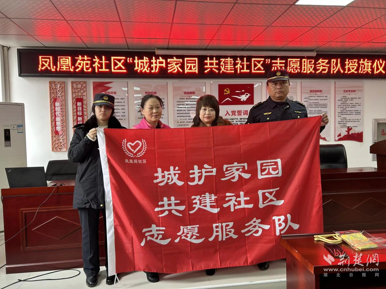 現(xiàn)場為“城護(hù)家園 共建社區(qū)”志愿服務(wù)隊(duì)授旗。通訊員供圖