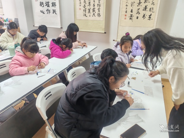 隨后,“閱讀媽媽”將話題自然引向非遺文化:“你們知道嗎?黃鶴樓不僅出現(xiàn)在詩詞里,還藏在楚繡的針腳中,藏在剪紙的紋樣里……”她通過展示精美的非遺作品,解讀楚繡中黃鶴紋樣的寓意,講述剪紙藝術如何再現(xiàn)黃鶴樓的雄姿。在她的娓娓道來中,黃鶴樓與荊楚非遺的淵源徐徐展開,孩子們聽得入神,眼中閃爍著好奇與向往。