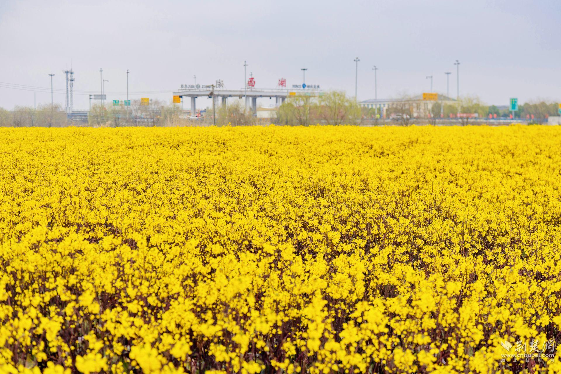荊楚網(wǎng)(湖北日?qǐng)?bào)網(wǎng))訊(記者 何婧 通訊員 汪玉平 徐卉婷 李玲)“這里的油菜花太壯觀了,一眼望過去全是金燦燦的,就像鋪了一張大地毯!”3月10日上午,駕車經(jīng)過東西湖區(qū)西湖收費(fèi)站的王女士,被眼前這片突如其來(lái)的金色花海深深震撼。她忍不住停下車,和閨蜜一起沖進(jìn)花田,留下這個(gè)春天最美的瞬間。