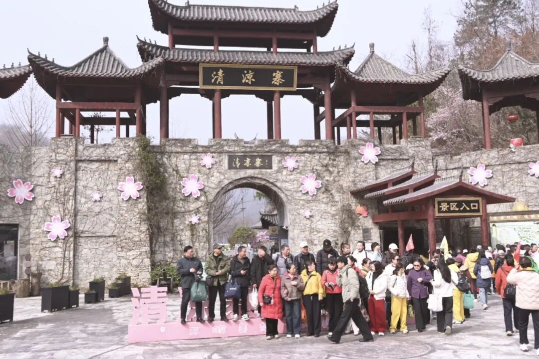 作為國(guó)內(nèi)規(guī)模最大的櫻花觀賞地,清涼寨擁有3200余畝中華櫻花,數(shù)量逾11萬(wàn)株,大多生長(zhǎng)在海拔600米以上的向陽(yáng)坡上,分早、中、晚三期次第開放,賞櫻周期更長(zhǎng)、野趣更濃。