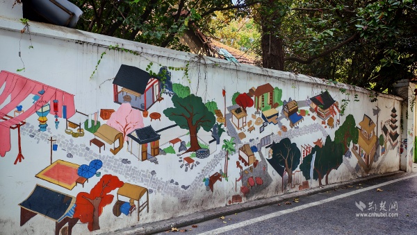 社區(qū)黨委以文化為著力點(diǎn),以“微改造、精提升”為路徑,探索打造古今交融、文旅共生的“宜游”社區(qū)。從九龍井正街到先賢街,藏在居民樓中、電線桿上的明楚王府文化彩繪與武昌古城元素相得益彰,地名文化墻以漫畫形式述說老街往事,生動展示社區(qū)文化遺存和老街古巷歷史。各色花卉綠植與武漢主題創(chuàng)意打卡裝置珠玉其間,形成“幾步一景”的游覽體驗。