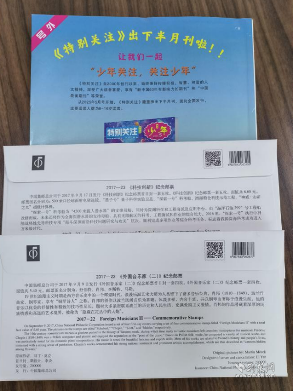 活動伊始,武昌區(qū)郵政分公司精心準備了一份份“精神食糧”,將科技創(chuàng)新、音樂家等不同主題的首日封以及《特別關注》雜志贈送給參與活動的小朋友們。首日封上精美的郵票圖案記錄著時代的印記,雜志中蘊含的人生智慧啟迪著幼小的心靈。