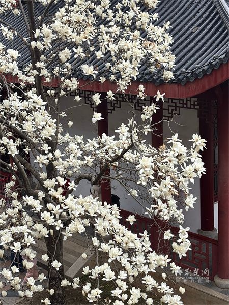 荊楚網(wǎng)(湖北日?qǐng)?bào)網(wǎng))訊(通訊員 杜茜)春日漫步長春觀,青磚黛瓦之間,幾樹玉蘭花悄然盛放。素白花瓣如云似雪,在古觀的靜謐中輕展身姿,不染塵俗,自帶清逸。微風(fēng)拂過,暗香浮動(dòng),淡淡花香縈繞鼻尖,與道觀的禪意相融,更添幾分空靈。