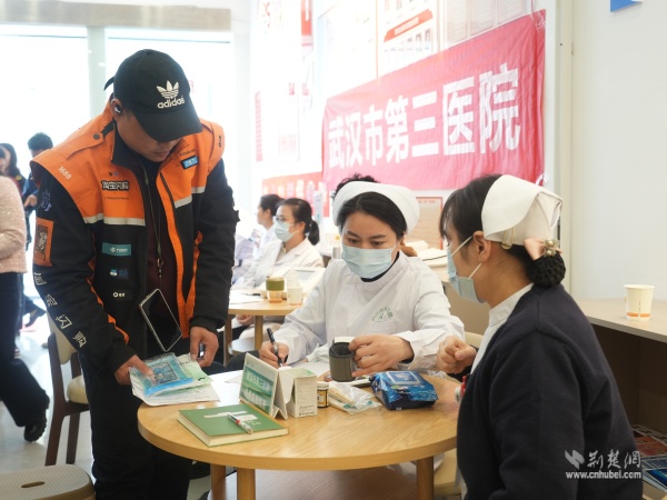 互動環(huán)節(jié)采取“一站式集成服務(wù)”,將活動氛圍推向高潮。社保專家咨詢臺前,騎手們排隊咨詢靈活就業(yè)參保、待遇申領(lǐng)等問題;醫(yī)護(hù)人員同步開展義診服務(wù),提供血糖血壓監(jiān)測、骨質(zhì)疏松檢測,并手把手教大家正確使用筋膜槍,緩解肌肉疲勞;漢口銀行黃鶴樓支行工作人員現(xiàn)場為有需要的騎手辦理社???,并贈送貼心小禮品,打通職業(yè)傷害待遇享受“最后一公里”;愛聯(lián)盟工作室咨詢臺前,幾位年輕騎手駐足咨詢、登記意向,在忙碌生活中邂逅溫暖期待。