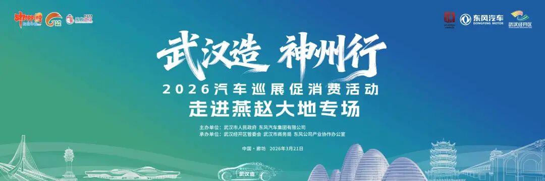 風(fēng)起車谷,智惠燕趙。3月21日,“武漢造 神州行”2026汽車巡展促消費(fèi)活動(dòng)·走進(jìn)燕趙大地專場將在河北省廊坊市舉行。這也是“武漢造”汽車巡展促消費(fèi)活動(dòng)首次走進(jìn)燕趙大地。