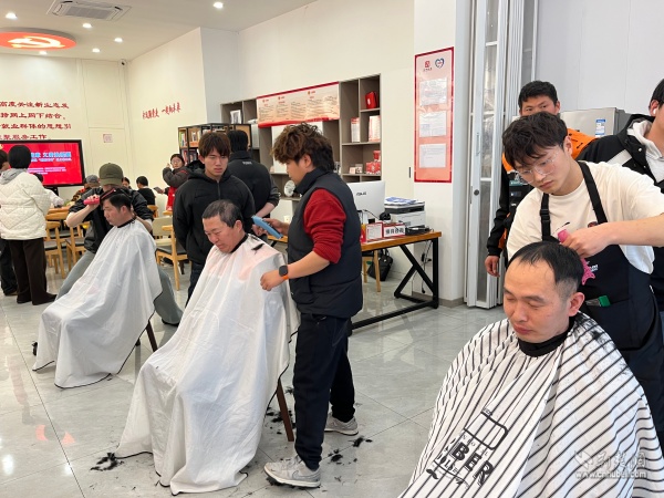 義診區(qū)旁,武昌“新興學(xué)院”天姿美發(fā)教學(xué)點(diǎn)的志愿者們支起簡(jiǎn)易理發(fā)攤。他們手持剪刀,耐心詢問每一位騎手的發(fā)型偏好,細(xì)致滿足各式需求。正值“龍?zhí)ь^”理發(fā)的傳統(tǒng)吉日,短短半天時(shí)間,志愿者們便為40余名騎手換上了精神抖擻的新發(fā)型,讓大家在奔波忙碌中也能容光煥發(fā)。街道工作人員全程引導(dǎo),維持秩序、遞上熱水,現(xiàn)場(chǎng)井然有序,暖意流淌。