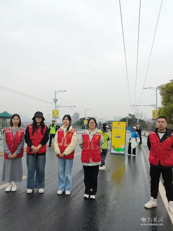 比賽當(dāng)日清晨,天光微亮,黃鶴樓街道全體機(jī)關(guān)干部、各社區(qū)工作者、志愿者已全部到崗就位。在轄區(qū)賽段沿線、各個路口,“黃鶴家人”志愿服務(wù)隊(duì)成員們身著統(tǒng)一馬甲,有序開展秩序維護(hù)工作,引導(dǎo)觀賽群眾安全文明觀賽,耐心疏導(dǎo)擁堵點(diǎn)位。嚴(yán)謹(jǐn)細(xì)致的秩序維護(hù),確保了賽道暢通無阻,為跑者安心奔跑筑起堅(jiān)實(shí)的屏障。