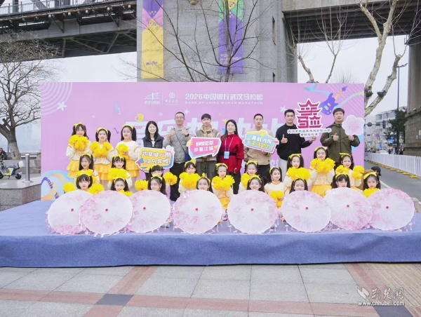 賽道之外,“民間音樂加油站”同樣精彩紛呈。武漢音樂學(xué)院中樂系學(xué)子擊鼓而鳴,音樂商戶武漢眾樂樂器員工用躍動的音符引爆現(xiàn)場氛圍。彭劉楊路社區(qū)共建單位彭劉楊郵政支局員工熱情助陣,大成社區(qū)汪老師童聲合唱團(tuán)的清脆童聲、武昌未來實(shí)驗(yàn)小學(xué)(黃鶴樓校區(qū))小朋友們的亮麗裝扮,為賽道增添了一抹靈動的色彩。讀書社區(qū)聯(lián)合湖北中醫(yī)藥大學(xué)第一臨床學(xué)院青年黨員為漢馬選手加油鼓勁,社區(qū)居民身著紅衣,敲響鑼鼓,用最質(zhì)樸的方式傳遞最真摯的熱情。