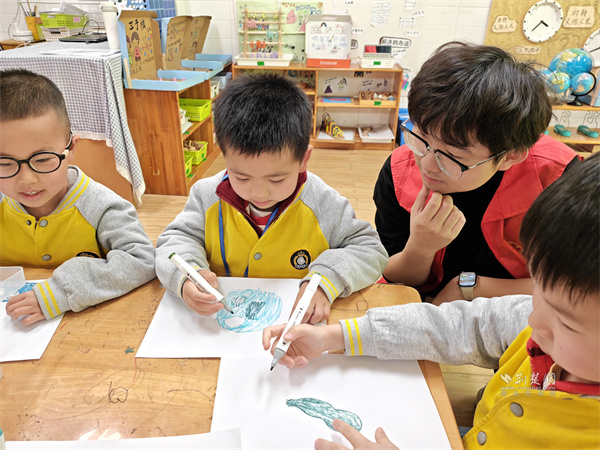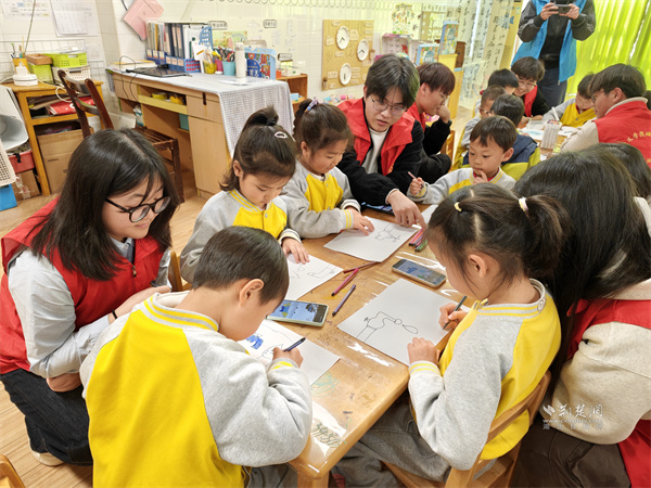 志愿者與小朋友開展互動(dòng)教學(xué)。 通訊員供圖