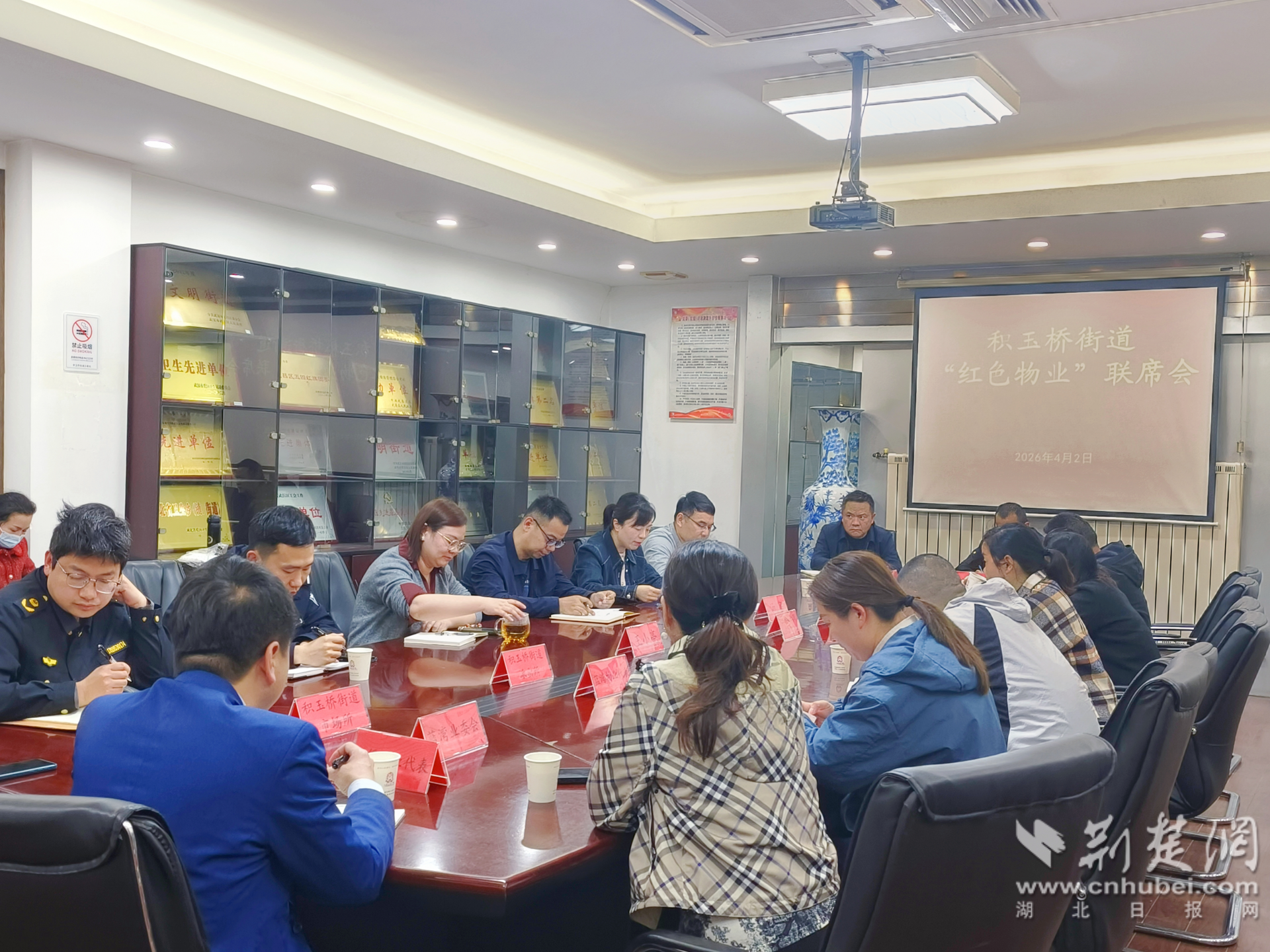 荊楚網(wǎng)(湖北日報網(wǎng))訊(通訊員 姜秀芬 陳博龍)4月2日,武昌區(qū)積玉橋街道召開“紅色物業(yè)”聯(lián)席會議,街道、社區(qū)、業(yè)委會、物業(yè)企業(yè)等30余名代表齊聚一堂,通過經(jīng)驗(yàn)交流、問題通報、集中議事等方式,共商物業(yè)服務(wù)提質(zhì)路徑,推動黨建引領(lǐng)下的多方聯(lián)動走深走實(shí)。
