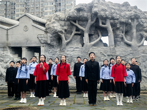 首義烽火石刻前齊誦《少年中國(guó)說》。 通訊員供圖