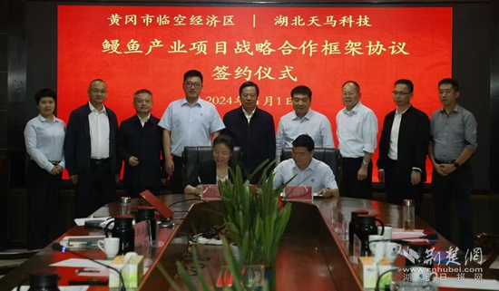 2024年11月1日,產(chǎn)業(yè)鏈領(lǐng)導(dǎo)工作小組趕赴福建與天馬科技集團(tuán)洽談合作,并順利簽訂戰(zhàn)略合作協(xié)議。根據(jù)協(xié)議,天馬科技集團(tuán)將在未來三至五年內(nèi)在黃岡繼續(xù)擴(kuò)大養(yǎng)殖規(guī)模,在現(xiàn)有基礎(chǔ)上擴(kuò)大一倍,屆時在黃岡總投資將達(dá)到20億元,養(yǎng)殖面積超過兩千畝,年產(chǎn)鰻魚兩萬噸。同時,新建一家烤鰻加工廠,并積極對接花湖機(jī)場,讓活鰻直接上飛機(jī)出口。