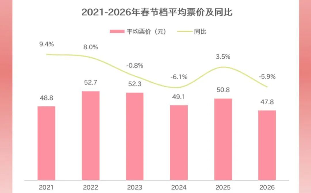 與此同時,今年春節(jié)檔平均票價降至47.8元,為近六年最低水平,三四線城市票價下滑幅度更為明顯,同比下降超6%,大幅降低大眾觀影門檻。