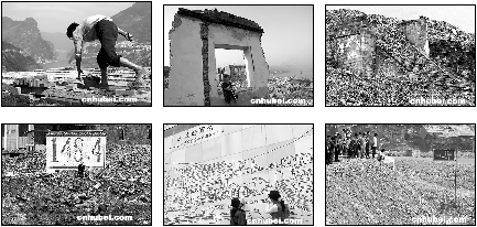 (圖1)西陵峽兵書寶劍峽口,村民正忙著蓋新樓房。 (圖2)一名兒童在已拆得面目全非的房屋前玩耍。 (圖3)奉節(jié)老城開濟門城墻如今只剩殘垣斷壁。 (圖4)祖孫倆坐在云陽老縣城二期水位標(biāo)牌前。 (圖5)奉節(jié)縣居民在新縣城百米速寫畫墻上覓舊城蹤影。 (圖6)萬州老城最繁華的勝利街只留下了指示路牌。 ______________________________________________________