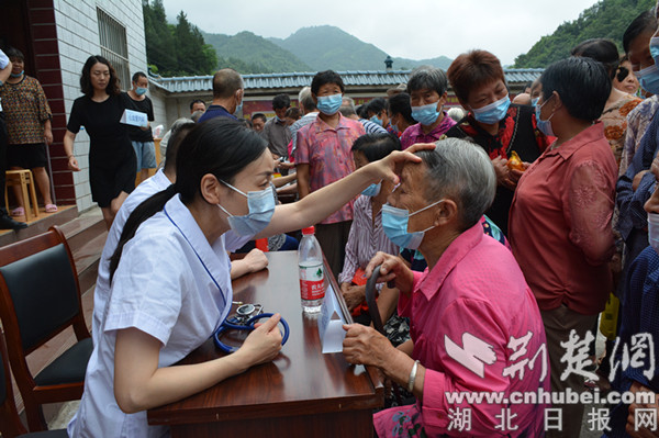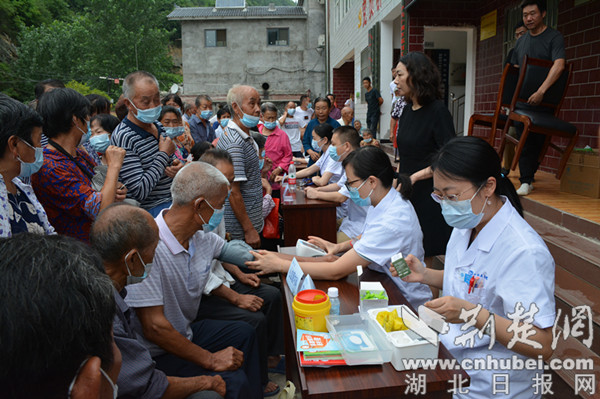 楊柳村位于位于鄖陽區(qū)西南部的大山深處,距離十堰市區(qū)50余公里,是十堰市稅務(wù)局鄉(xiāng)村振興聯(lián)系點(diǎn),村里以老年人居多。聽說市人民醫(yī)院的專家要來義診,村民們早早就來到村委會(huì),在市稅務(wù)局駐村工作隊(duì)的精心組織下,佩戴口罩排起了長隊(duì)。簡短的介紹儀式結(jié)束后,來自市人民醫(yī)院心血管內(nèi)科、兒科、消化內(nèi)科、睡眠醫(yī)學(xué)科、內(nèi)分泌科等專業(yè)學(xué)科的8位專家便立即開始為村民診療。