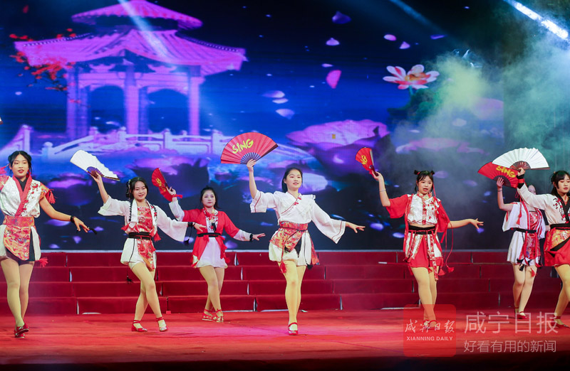 元月3日晚,咸寧高中舉行主題為“永遠(yuǎn)跟黨走,共筑中國夢(mèng)”2019年新年晚會(huì),歌舞、小品、詩朗誦等17個(gè)節(jié)目均由該校師生自編自演,展示了咸高對(duì)美好未來的向往和積極進(jìn)取的精神面貌。圖為咸高學(xué)生正在表演舞蹈《寄明月》。