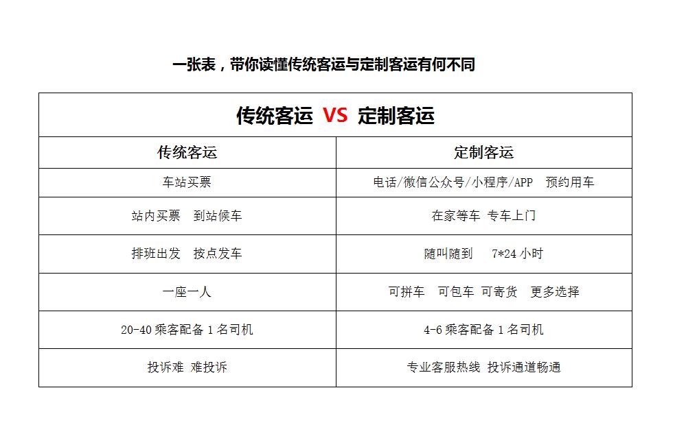 與傳統(tǒng)客運大巴相比,定制客運采用的是更為靈活的5座轎車或7座商務車,可以實現(xiàn)點對點、門對門的上門接送服務,減少旅客倒車、候車之苦。并且隨叫隨到,每日24小時在線,所有服務均提供正規(guī)發(fā)票和保險保障。