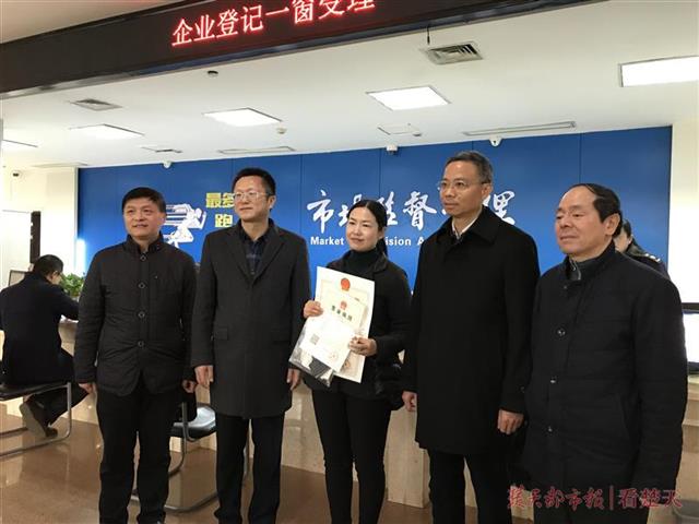楚天都市報2月25日訊(記者周鵬 通訊員劉元江 梁耀)2月25日上午8時30分時,在咸寧市行政服務中心工商窗口,市政府常務副市長何開文向咸寧億創(chuàng)電子商務有限公司代表陳霞頒發(fā)了首張“513”工作模式營業(yè)執(zhí)照。據(jù)了解,這是咸寧進行的工商審批改革,在全省率先將企業(yè)開辦的全部5個環(huán)節(jié)壓縮至3個工作日。