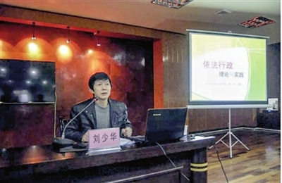 圖為劉少華講解《依法行政理論與實踐》普法課的情景