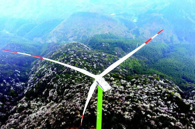 3月30日,鳥瞰咸寧大幕山,一臺臺發(fā)電風(fēng)機如鳥兒展翅,“徜徉”在漫山櫻花花海中。大幕山風(fēng)力發(fā)電場由中廣核集團投資5.5億元建設(shè),計劃安裝29臺風(fēng)力發(fā)電機組,總裝機規(guī)模63.8兆瓦,年發(fā)電量約1.1億千瓦時。目前已安裝風(fēng)機16臺,預(yù)計5月底完工、并網(wǎng)發(fā)電。