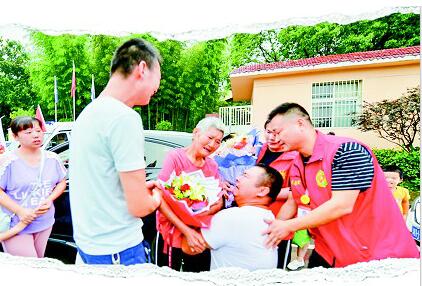 6月29日清晨7時許,一輛轎車駛出京港澳高速咸寧泉口收費站,緩緩?fù)O隆T诹x工的攙扶下,一位白發(fā)婆婆顫顫巍巍地下車。37歲的余軍雙腿跪下,抱著她痛哭起來:“媽,你上哪兒去了,怎么才回來……”在場的親人和義工們無不潸然淚下。